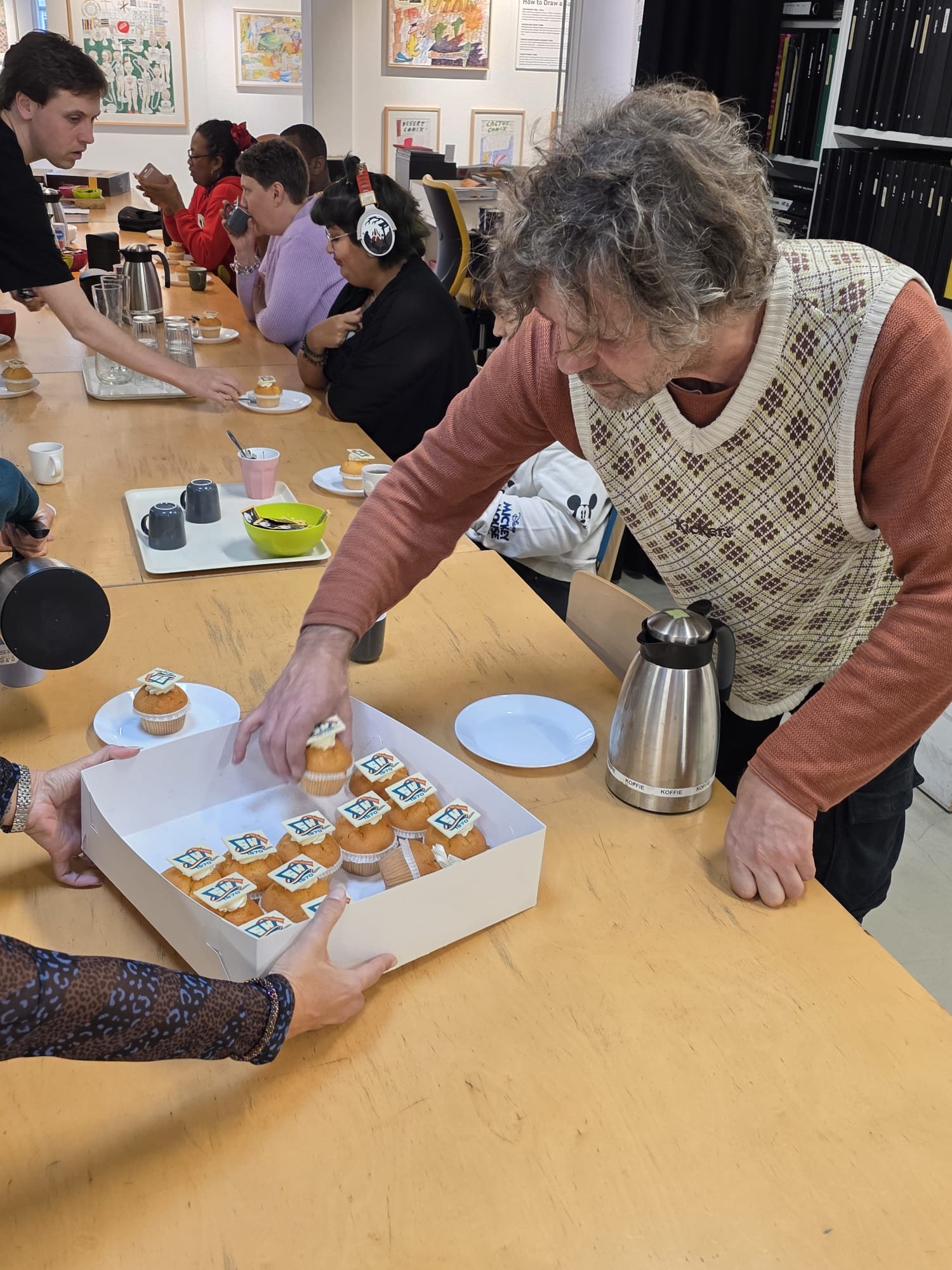 Smith-Europe 55 years! In celebration of our 55th anniversary, we treated the artists of Galerie Herenplaats in Rotterdam to festive muffins today. Smith-Europe has a special connection with Galerie Herenplaats — several of their artworks adorn our office. The gallery provides artists with an intellectual disability or psychiatric background a place to develop their talents and grow professionally.